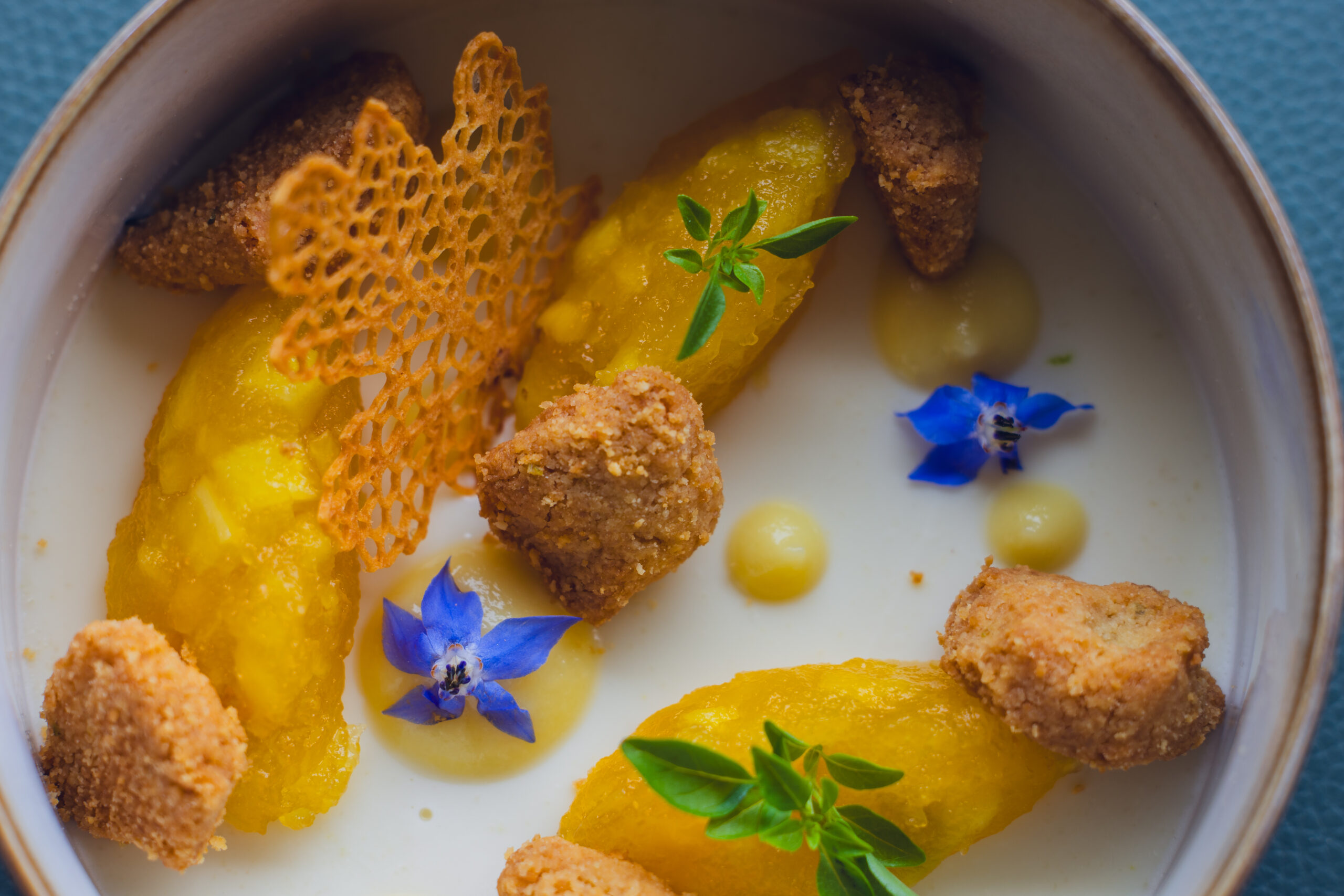 Notre cheffe Fanny, vous invite à découvrir une carte alliant tradition et créativité, qui évolue au fil des saisons. Au déjeuner comme au dîner, vous dégusterez une cuisine du moderne dans un cadre élégant, en salle ou en terrasse dès que le temps le permet. Pour accompagner votre repas, nous vous proposons une belle sélection de vins, soigneusement choisies.